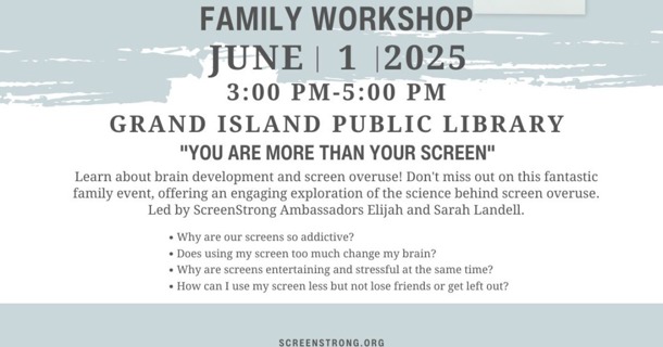Grand Island, Neb. — The Grand Island Public Library will be hosting a free family workshop titled “You Are More Than Your Screen.”