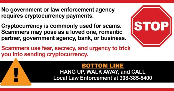 On Friday, December 19, AARP Nebraska Fraud Fighter volunteers will meet with GIPD officers at 10 a.m. at the Law Enforcement Center. From there, volunteers and officers will split into two groups to visit four business locations that have cryptocurrency kiosks.